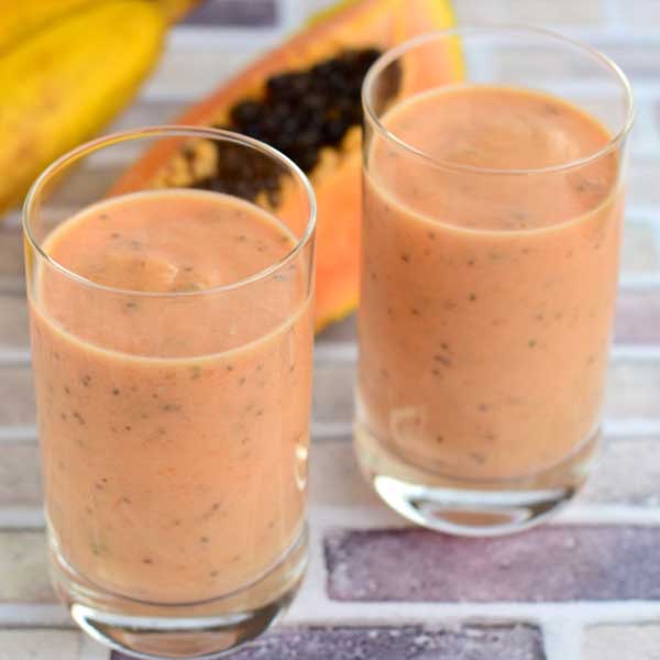 Tropical papaya banana smoothie with creamy texture and nutrients.